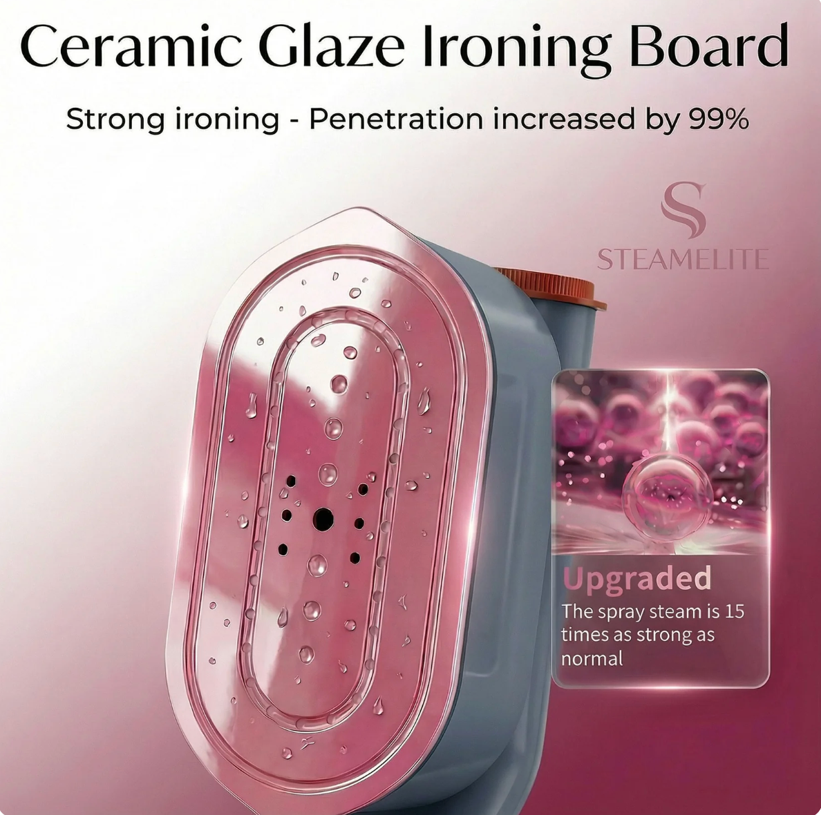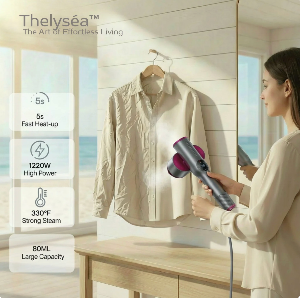 smooths wrinkles in less than 60 seconds, without water stains, effortless and stress-free.